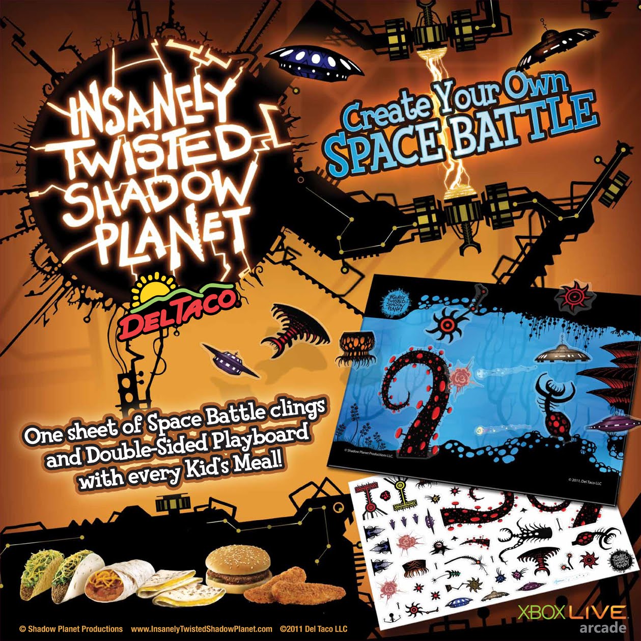A few months ago, Joe and I worked with Idea Planet to design a tie-in package for Del Taco using the art of Insanely Twisted Shadow Planet. I provided them with high resolution art files and some layout mock-ups and from there, the Idea Planet designers did a mighty fine job putting the final package together!