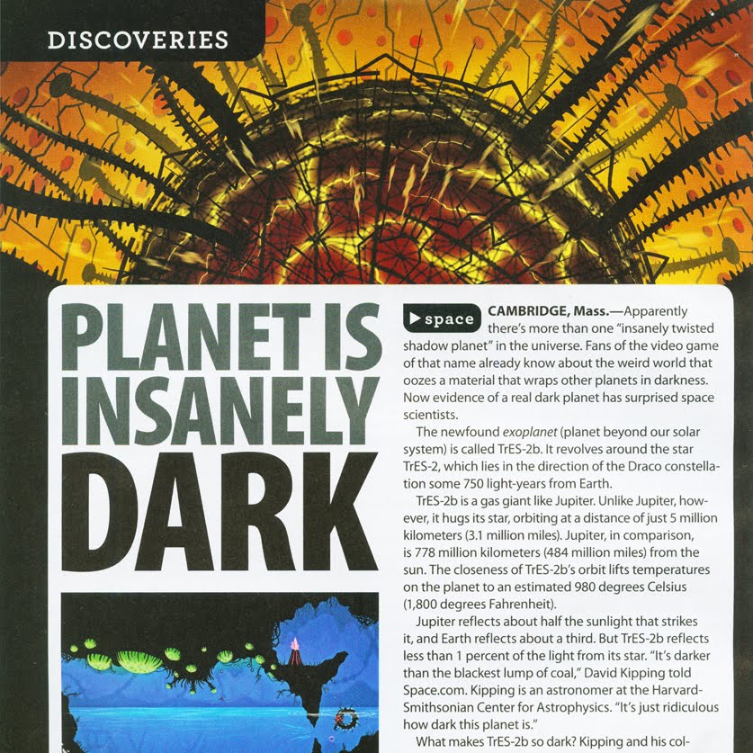 We are working on a story that mentions the comparison between a real planet and "Insanely Twisted Shadow Planet". We try to introduce science topics to our young readers in a really cool and interesting way.