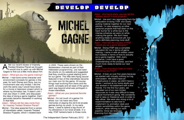 Issue 2 of The Independent Gamer is out and it features an interview I did with them about a week ago. You can download a digital copy of the magazine for free or get a printed one for $3.80. Check it out! You can also visit their official website here.